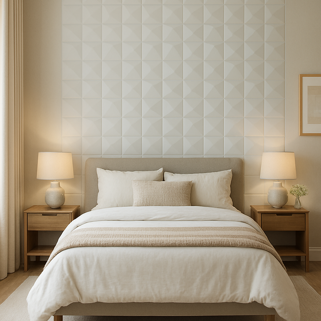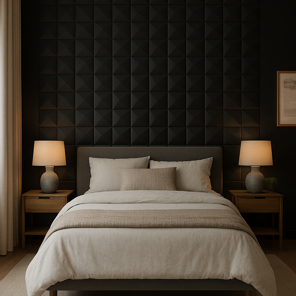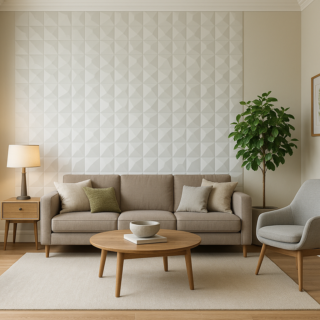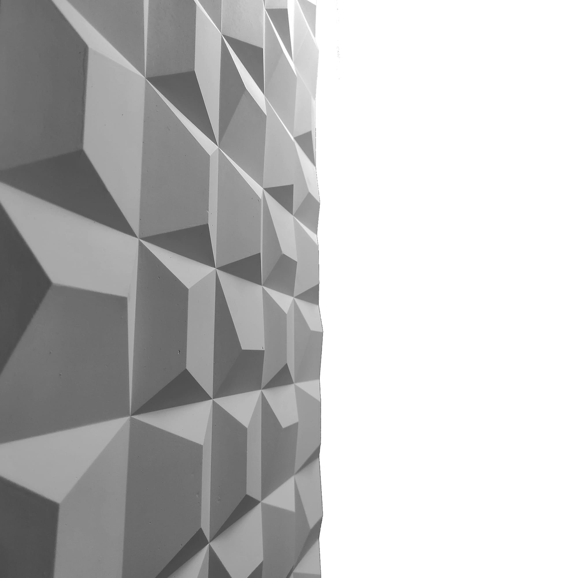 Odin is an expressive 3D wall panel that attracts attention with its geometric pattern and play of light. Its precisely designed multi-walled forms create a three-dimensional mosaic effect, reminiscent of diamond structures. The surface changes its face depending on the angle of light, adding depth, rhythm and modern elegance to the interior.